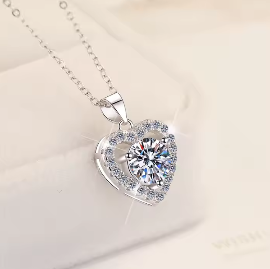 The Fidela pendant is a touching symbol of love and devotion. Showcasing a brilliant 1-carat D Color VVS1 moissanite as its centerpiece, embraced by a radiant heart-shaped frame with sparkling zircon accents, this necklace is the ultimate expression of your feelings. Ideal for anniversaries, weddings, or as a thoughtful gift for someone special.